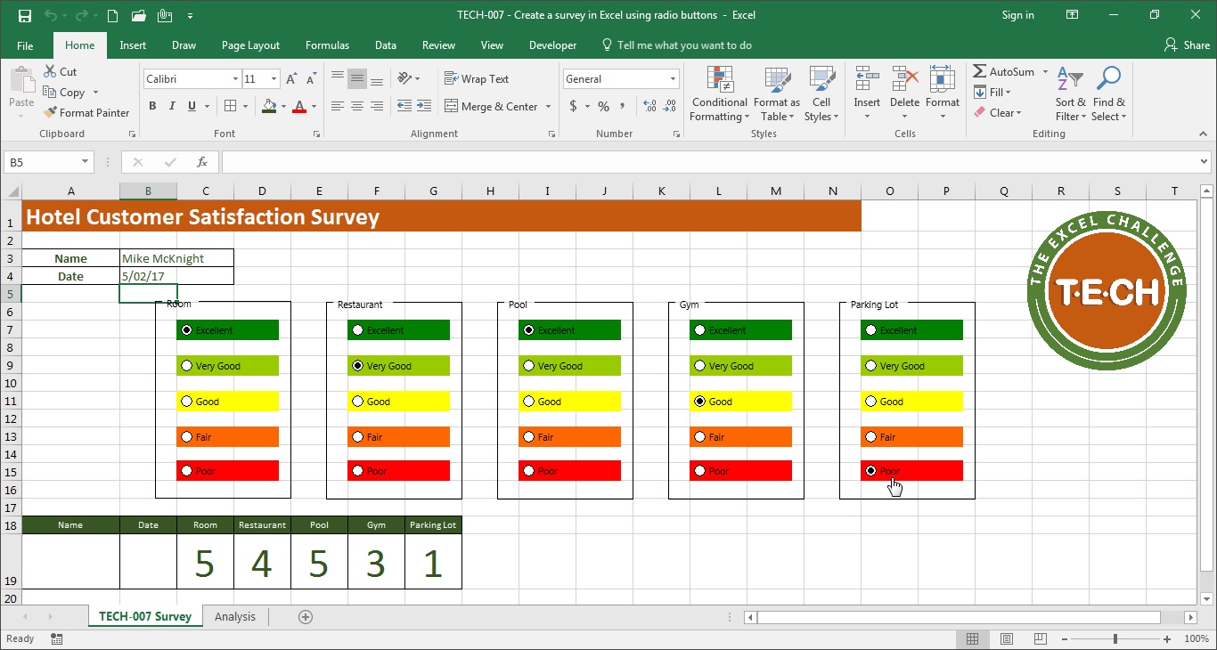 Create a survey in Excel using Option Buttons (also known as Radio Buttons)