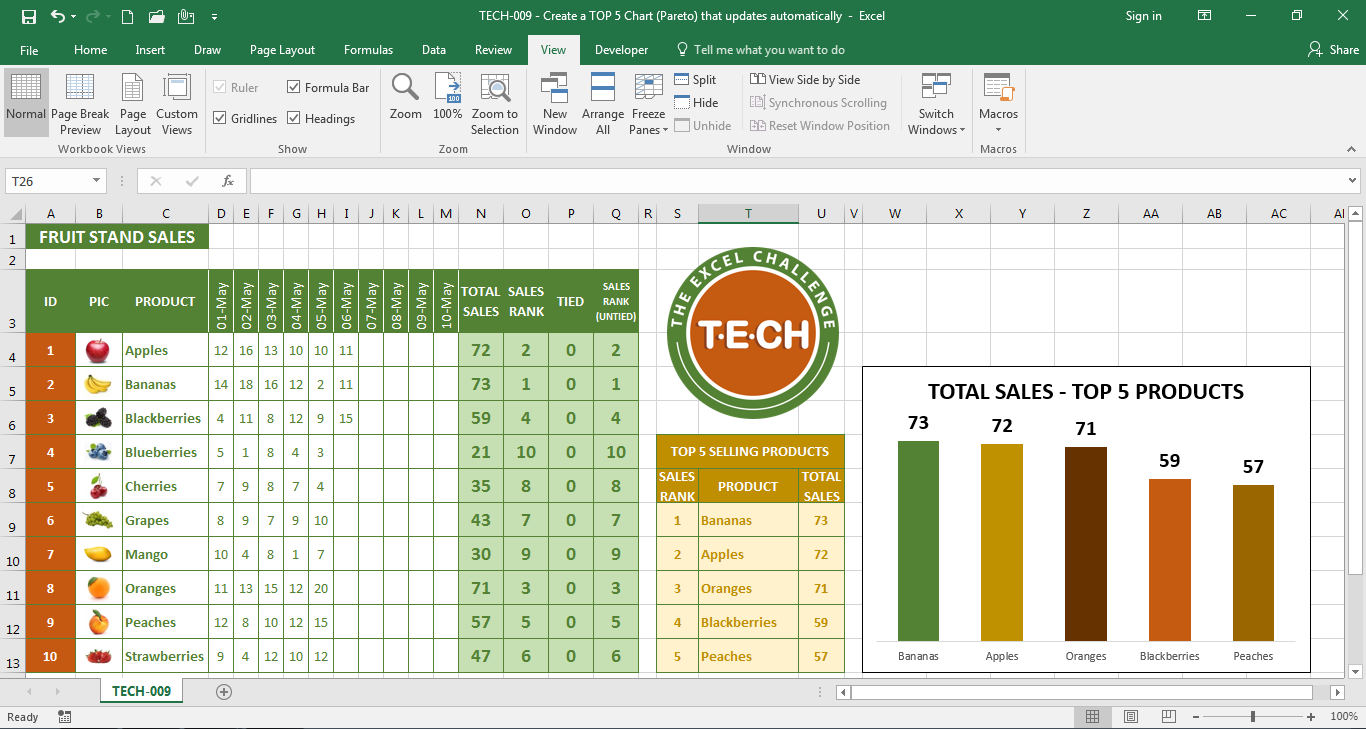 Create a TOP 5 Chart (Pareto) in Excel that updates and sorts automatically