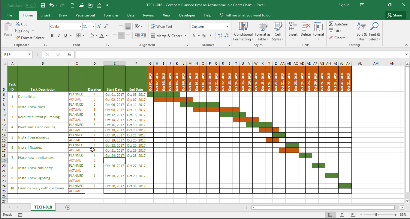 Compare Estimated Time vs Actual Time in a Time Line (Gantt Chart) in Excel